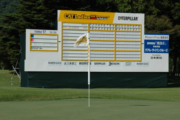 8月1日より、LPGAツアー「CATレディス・ゴルフトーナメント」の事前宣伝をカスタムフラグスティックで実施しました。(大箱根カントリークラブ/神奈川)海外ツアーではもはや常識となっているカスタムフラグスティックですが、日本ツアーでは今回が初めての事例となりました。